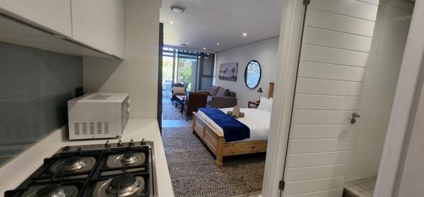 This ground floor STUDIO unit in PEBBLE BEACH at SIBAYA is on offer with or without furniture. Currently used as AirBnB there is an opportunity for investment or just move in and live. The well-designed unit has a great living area with TV and workspace/ eating countertop. There is ample cupboard space next to the queen size bed and a well-designed kitchenette area is in the entrance area close to the shower and toilet en suite.