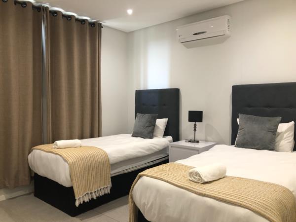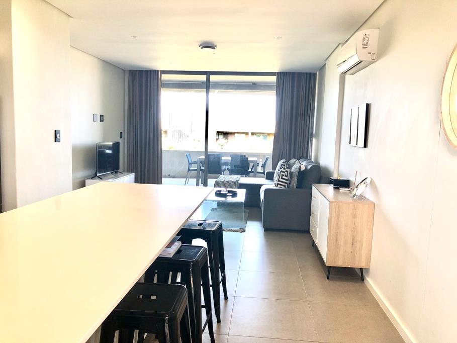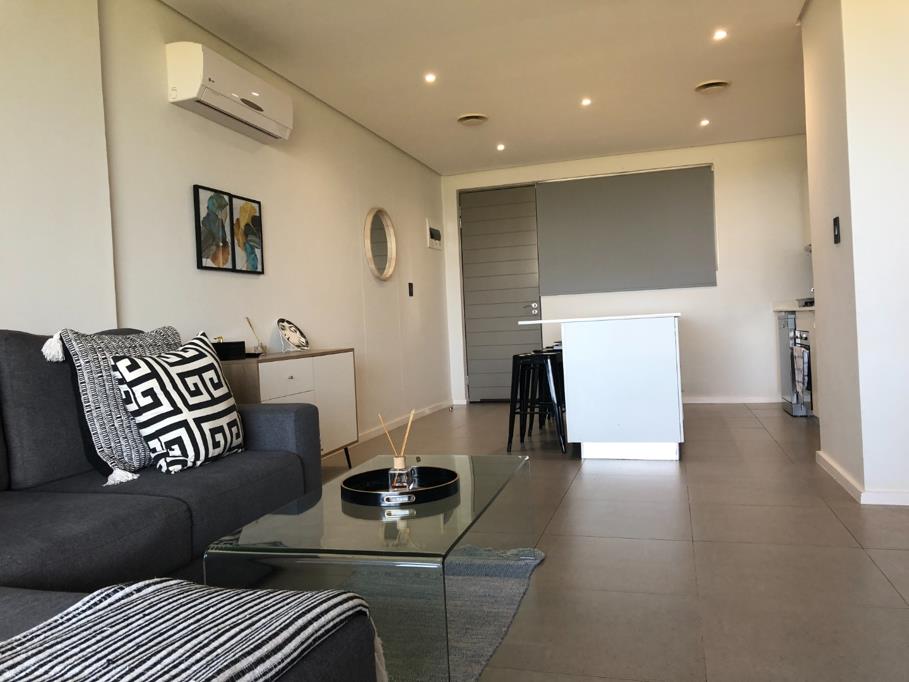 Scoop this fully air conditioned 2 bedroom, 2 bathrooms (1 en-suite) Upstairs apartment with an open plan feel of a lounge, dining and kitchen area, all opening onto a decent size balcony that overlooks a well manicured garden and swimming pools at Pebble Beach complex.