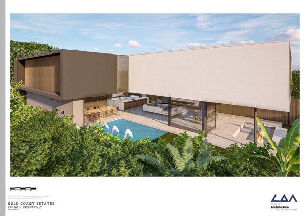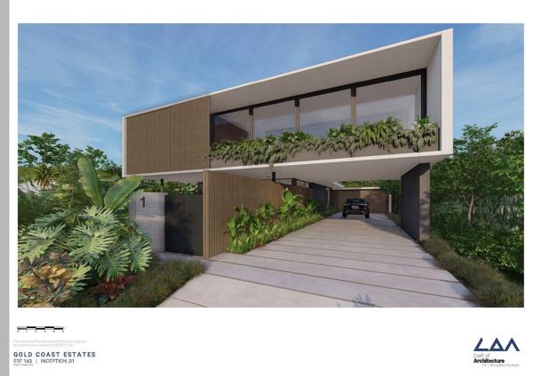 VACANT LAND - Stunning Proposed Designer House - Gold Coast 732m Land. 470m individually designer home with exceptional spaces and layout. Extra 100m of far has been purchased to accommodate this excellent approved design. The home has 3 bedrooms, all en-suite with executive master bedroom with walk-in closet, private lounge and en-suite.