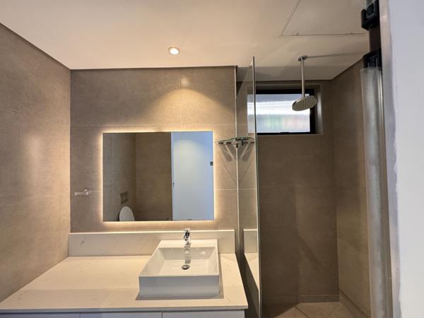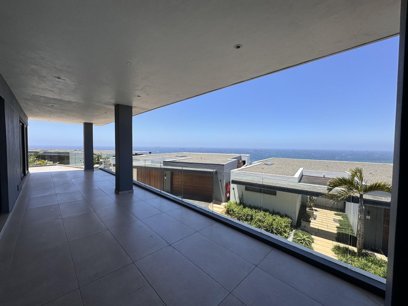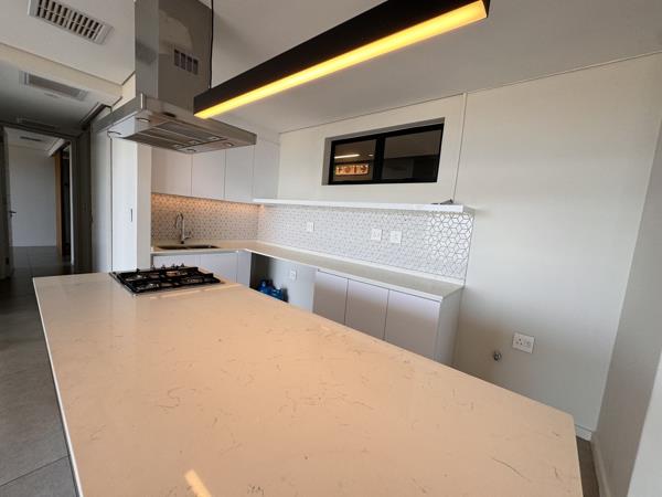 The open-plan kitchen is a contemporary masterpiece with sleek finishes, a built-in oven and stove, and a seamless connection to the bright and airy living spaces. The expansive balcony, complete with a built-in braai, is ideal for entertaining and offers a picturesque backdrop of the ocean for gatherings.