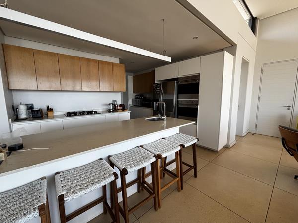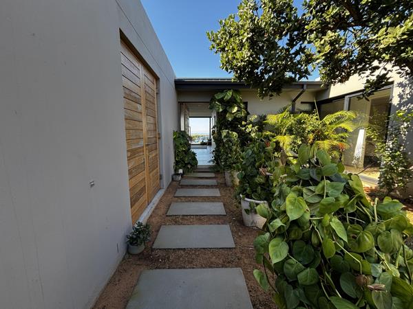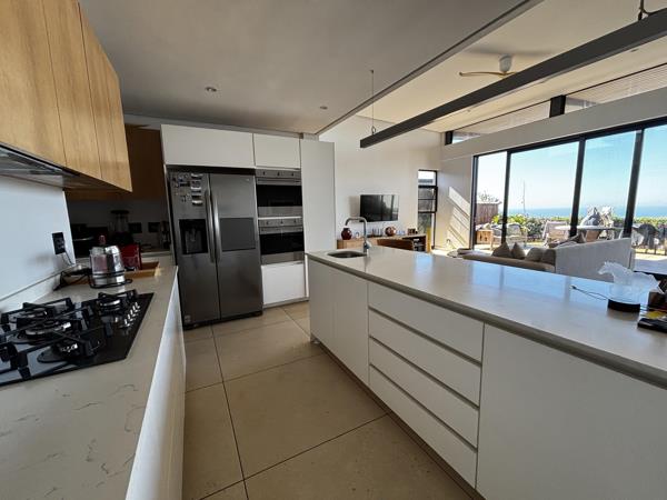 The single story home boasts an open, airy layout with tasteful finishes throughout, a double garage, and a welcoming garden courtyard at the entrance. The expansive entertainment area features breathtaking sea views, a private pool, and a jacuzziperfect for relaxed family living or hosting guests. The modern kitchen, complete with a separate scullery, anchors the open-plan living space.