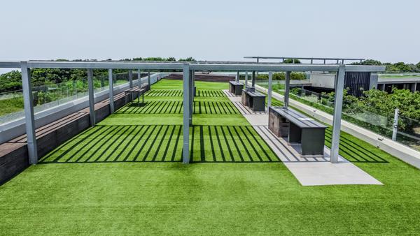 Three communal swimming pools, one set in the landscaped gardens and two on the rooftop with gas braai areas, picnic spots, and a putting green.