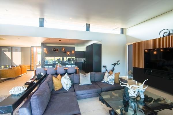An expansive open-concept living and dining area, ideal for both relaxation and entertaining guests.
