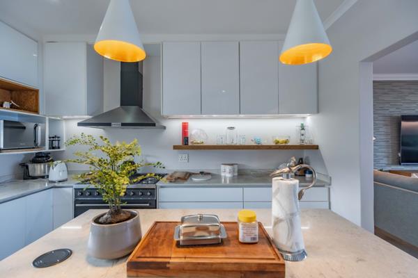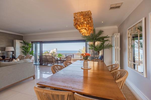 Elegance, space, and magnificent sea views with that special homely feeling, defines every detail. A gracious entrance leads into an expansive dining room and lounge, seamlessly flowing through sliding doors from the lounge and diningroom as well as the 4 bedrooms all with stunning sea views leading onto a fabulous large undercover patio and built in braai area. the ultimate setting for entertaining while enjoying uninterrupted sea views. A cosy FamilyTV lounge or the optional 5th bedroom adds to this gorgeous space!