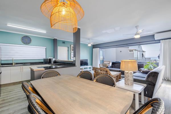 SOLE MANDATE | Renovated beachfront apartment in Perna Perna, Umdloti. On entrance, this unit features an open plan living and dining area which opens out onto a covered balcony with sea views. This unit has three well-sized bedrooms. Two bedrooms share a bathroom, with an en-suite off the main.