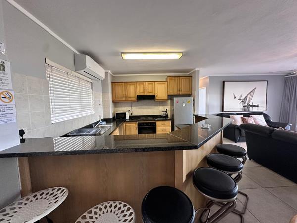 This beautifully positioned 3-bedroom, 2-bathroom (main en-suite) apartment offers the ultimate in coastal living, right on the sought-after Umdloti beachfront. Situated on the ground floor, the apartment boasts breathtaking sea views from the open-plan kitchen and living area, as well as from two of the bedrooms, both of which open through sliding doors onto the patio.