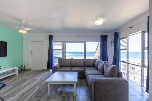 SOLE MANDATE | Renovated beachfront apartment in Perna Perna, Umdloti. On entrance, this unit features an open plan living and dining area which opens out onto a covered balcony with sea views. This unit has three well-sized bedrooms. Two bedrooms share a bathroom, with an en-suite off the main.