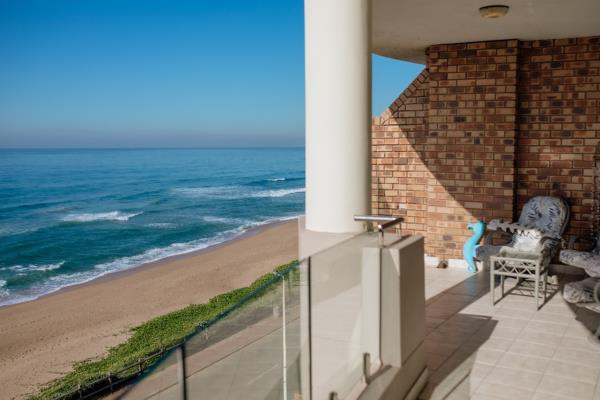 This three-bedroom, two-bathroom apartment boasts magnificent 180-degree sea views from every room. The open plan kitchen, dining room and lounge open onto a covered veranda with views all the way to Durban. The main bedroom offers and en-suite while there is a family bathroom that services the other two rooms. A rare find on the beach, is the double lock-up garage.