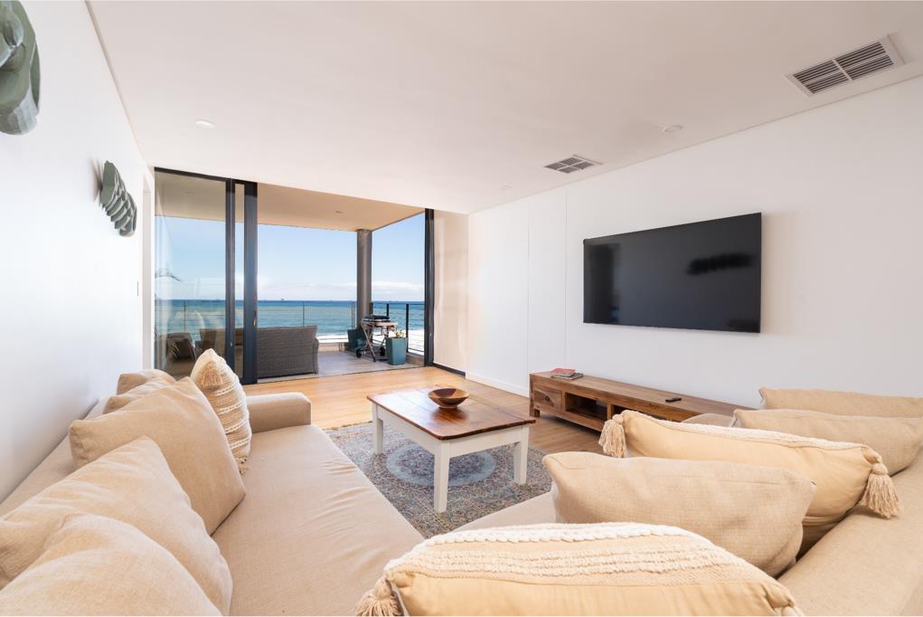 Step into a spacious, light-filled open-plan living and dining area designed for effortless entertaining. The sleek, state-of-the-art kitchen, complete with a generous centre island, premium finishes, and a separate scullery, flows onto a covered balconyoffering the perfect setting for morning coffees or cocktails against the backdrop of the endless ocean.