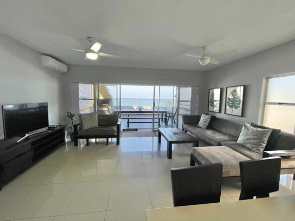 Spacious 3 bed fully furnished, two bathroom apartment in Umdloti. Offering beautiful sea views and direct access to beach over the road.
