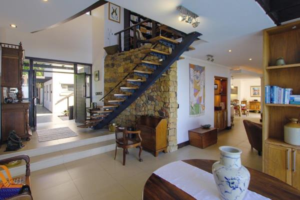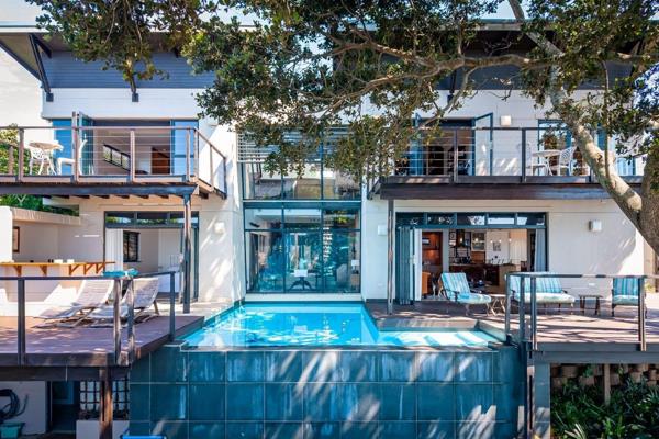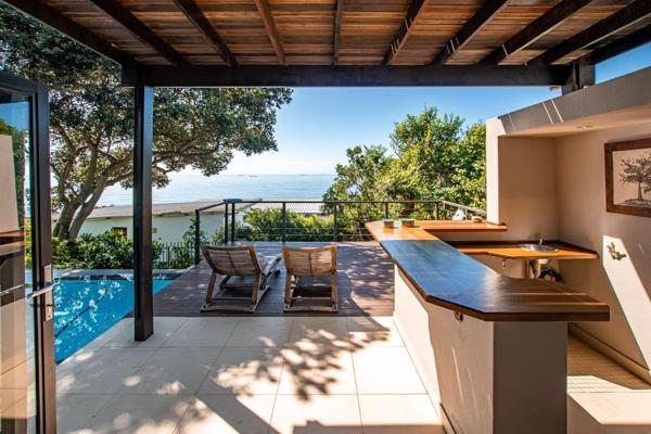 This versatile home can be enjoyed as a family home or income-generating upmarket guesthouse. There is a large separate one-bedroom flatlet, and a downstairs wing of the home can be transformed into an additional flatlet. All bedrooms have their own bathrooms and balconies with sea views, providing at least six bedrooms for letting.
