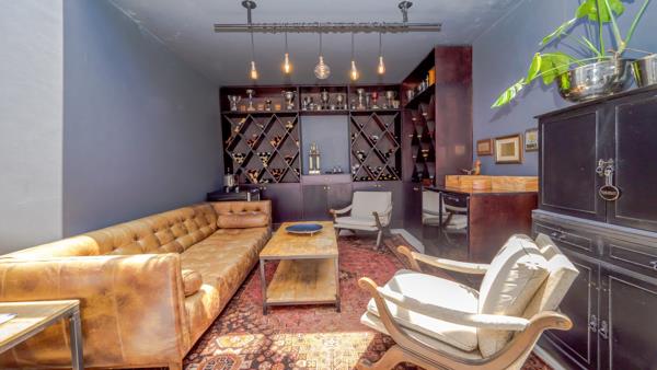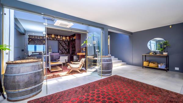 Step outside onto the large covered patio, ideal for hosting gatherings year-round, and discover a sophisticated wine cellar that also serves as a cozy secondary lounge area.