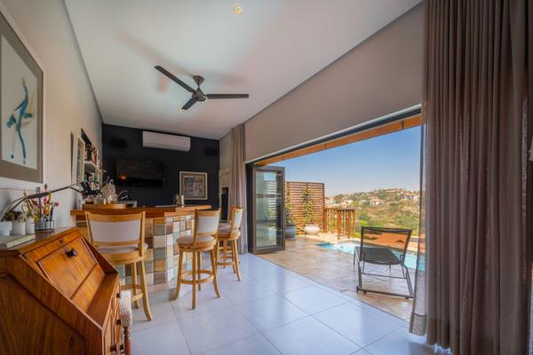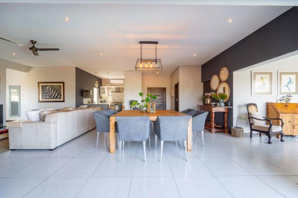 Upmarket secure coastal estate lifestyle with stunning sea views. Proudly presenting a stunning master built home in a pristine condition. This modern contemporary-owner designed 3 bedroom split level property offers a valuable investment opportunity with a potential letting income from the separate accommodation, offering a potential 2 bedroom fully contained flatlet with a kitchen, bathroom and large living room on the downstairs level with separate access.
