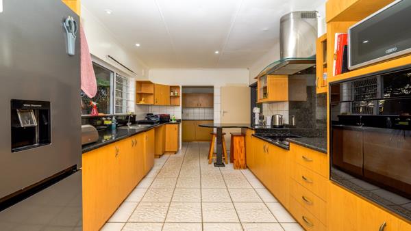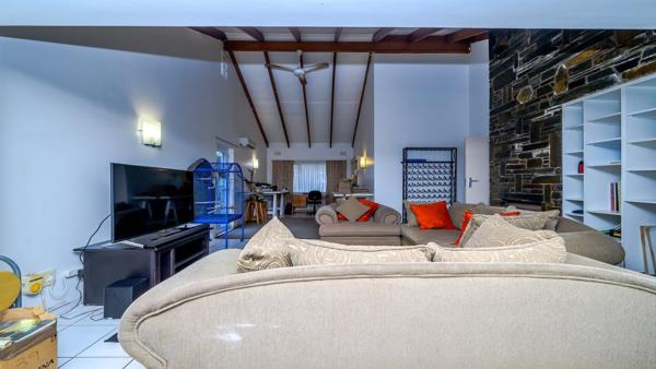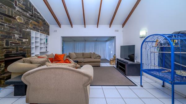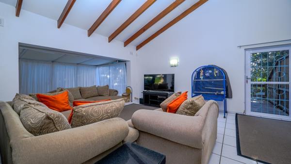 The open-plan living and dining areas flow seamlessly onto a covered patio overlooking a sparkling swimming pool ideal for weekend braais and year-round entertaining. The beautifully maintained garden provides plenty of space for kids and pets to play.