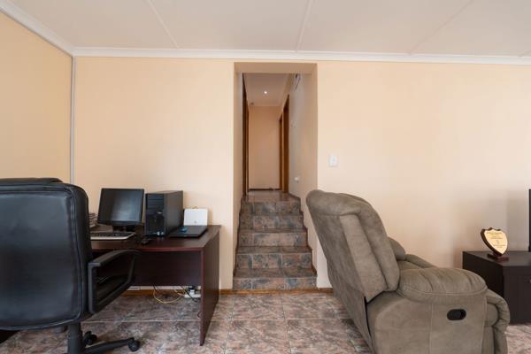 Entrance is through a motorized gate entrance with plenty of tarred parking and a large single garage. Additional parking is available in the yard for the convenience. The house is a brick-and-plaster home with aluminum windows and burglar guards. The house is neatly painted and well maintained with good walls, roofing, gutters, and fascia boards. The entrance to the house is a tiled family room with a lovely balcony view of the sunset. The family TV room is open to the kitchen and a dining area which is perfect for a family that loves spending time with each other. The kitchen has solid golden oak cupboard doors with a granite surface that is well maintained. The house has a scullery area as well. The three bedrooms are average size with floor tiles and built-in cupboards. The bathrooms are very neat and spacious. The rear yard has a concrete section suitable for additional development if required. The sellers are serious about selling. Viewing by prior arrangements for per-qualified clients is necessary.