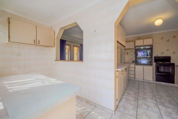 The main house welcomes you through an inviting entrance hall, leading into a formal lounge, a TV room, and a dining room, perfect for both relaxation and entertaining. The well-appointed kitchen features an electric stove, double ovens, ample cupboard space, and is complemented by a scullery and laundry with access to the outdoor area.