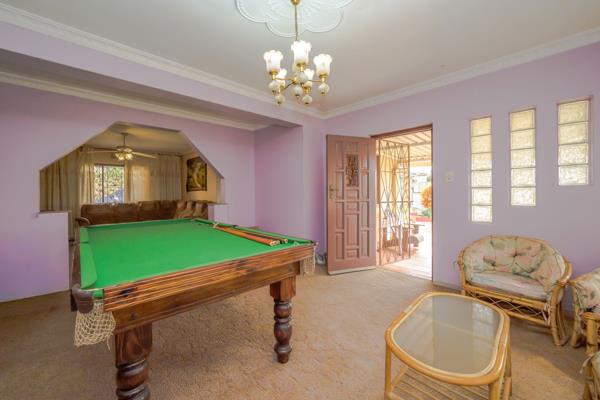 Outdoors, the home is enhanced by beautifully manicured gardens, automated gates, and an automated double garage with an attached awning and an extra toilet. Security is paramount, with burglar guards, security gates, and 24-hour surveillance. The property also provides parking for up to 5 vehicles.