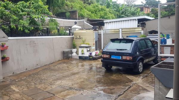 The back yard includes a fireplace for outdoor cooking, a water tank with a pump connected to the home and parking space for three vehicles. The yard has space for five vehicles.