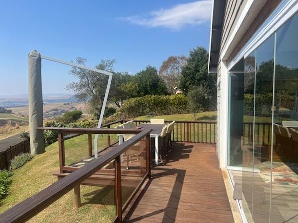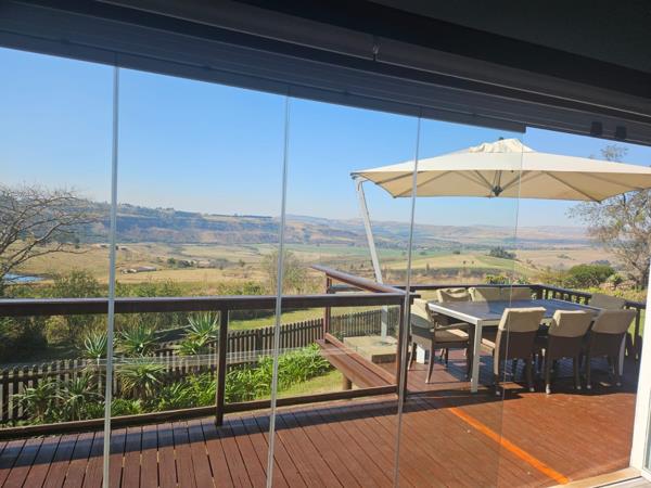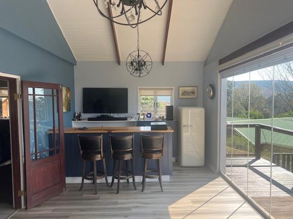 This area leads into a cosy bar area with glass stack doors opening onto a wooden deck from which the views of the valley and mountains are spectacular.