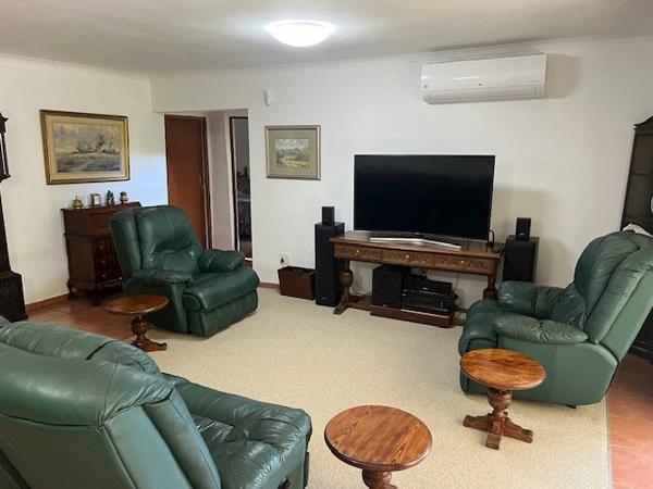The main bedroom upstairs offers lots of space with its own lounge area, en-suite bathroom, lots of cupboards and it opens onto a large feature balcony with pleasant views. Other features include a double garage, domestic quarters, wooden hut and low monthly rates.