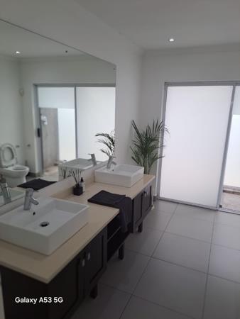 Spacious main bedroom with generous storage, a luxurious full en-suite with his andamp hers basins, large bath, and a one-of-a-kind outdoor rain shower.