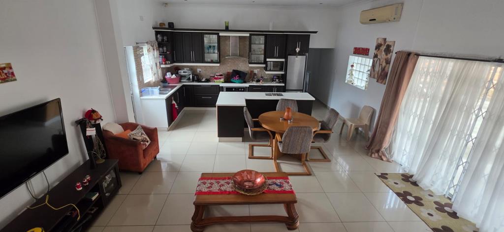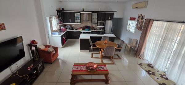 The home welcomes you with a bright open-plan living and dining area that flows seamlessly into a modern, well-appointed kitchen, featuring ample cupboard space, quality finishes, and a functional layout designed for everyday convenience and entertaining.