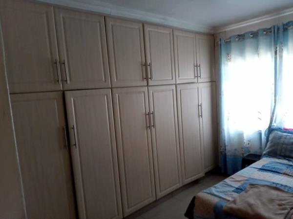 Bedroom with built in cupboards.