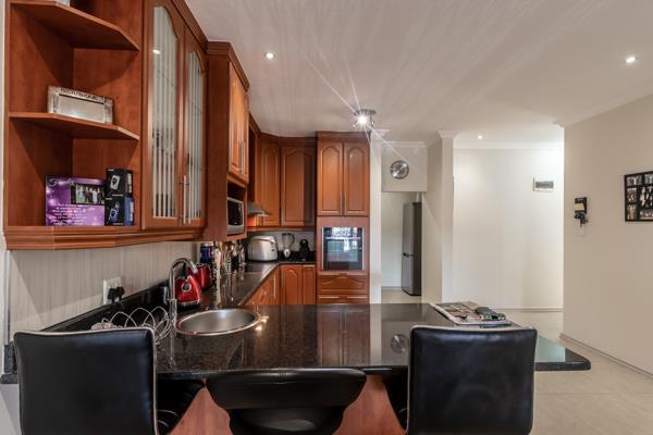 This lovely Mediterranean style complex offers a beautiful 208 square metres of upmarket luxury, comprising 3 double bedrooms and 2 large modern bathrooms. It is split level with the lounge above the double garages. The lounge is very long and spacious and tiled with beautiful porcelain tiles and has a lovely big balcony with valley views. The kitchen is to die for with expensive granite counter tops. There is full security and the complex has electric gates and is in a lovely tree lined road.