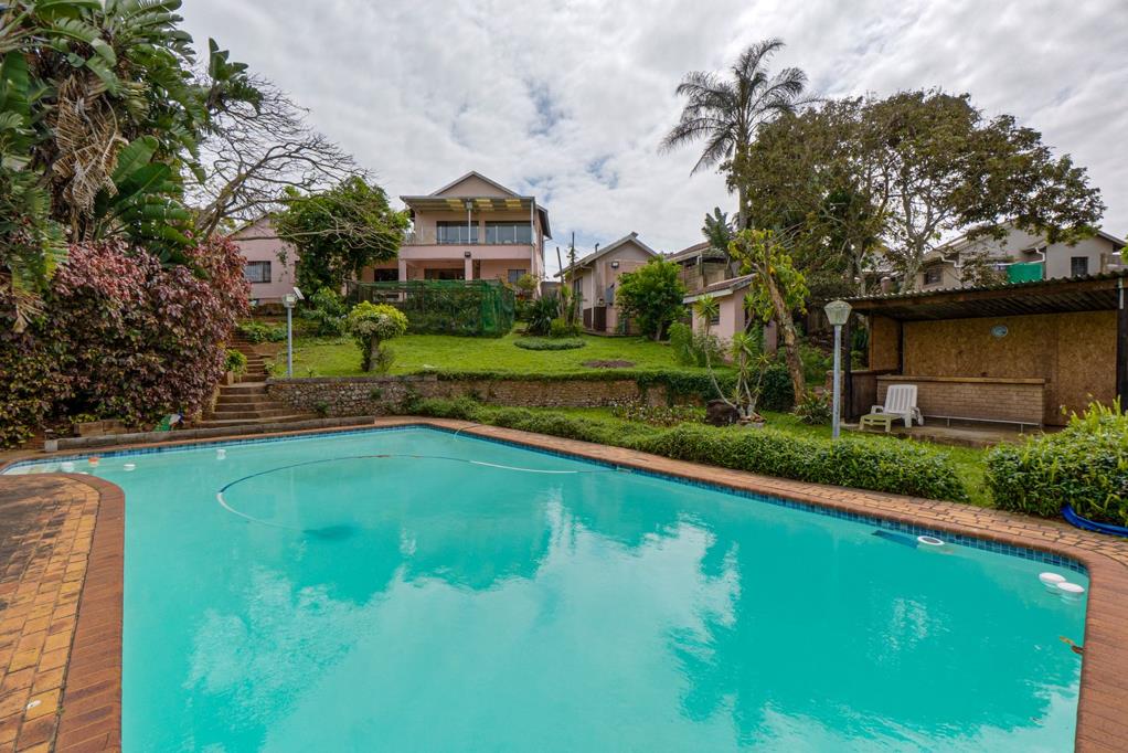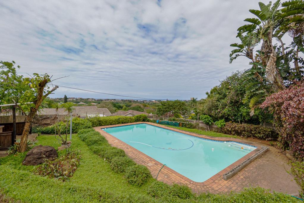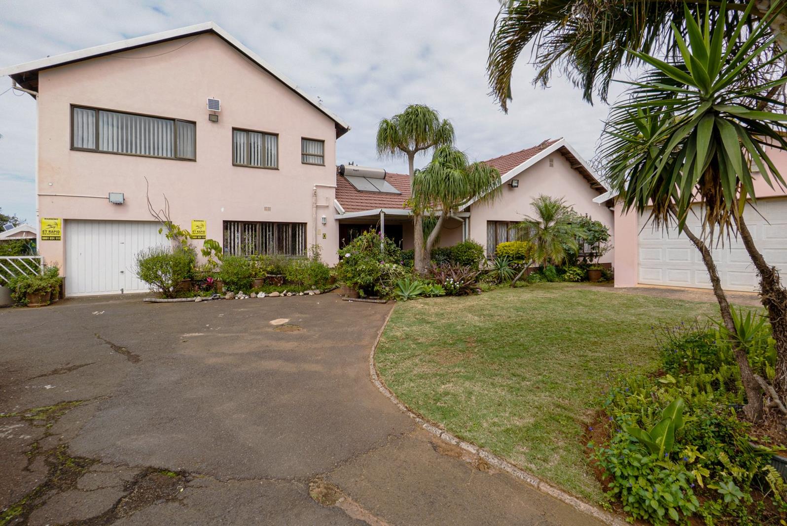 Nestled in the coastal suburban area of Amanzimtoti, this property offers a desirable South African lifestyle with convenient access to the sea. This substantial residence immediately impresses with its large footprint and established tropical garden. The property features a generous driveway leading to multiple garages, ensuring ample parking and storage. Energy efficiency is enhanced by a visible solar water heater, while security is addressed with burglar bars.