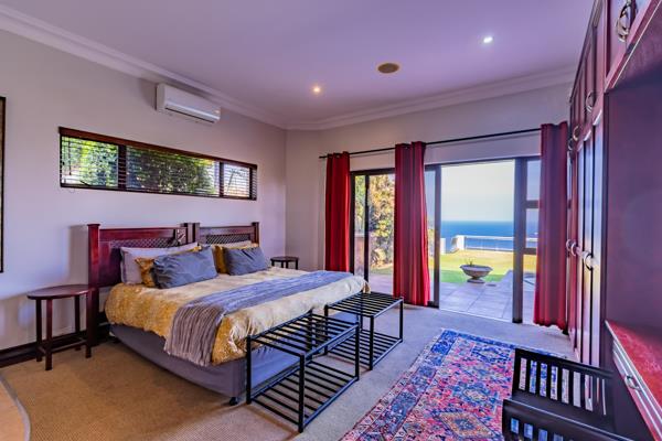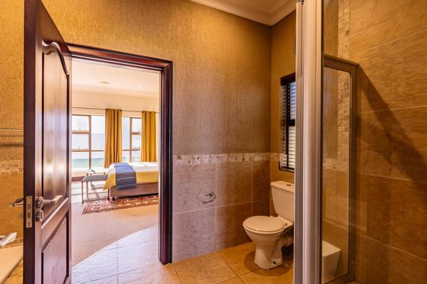 The main house features a spacious downstairs area with a large kitchen, lounge, scullery, dining area, and 3 bathrooms, accompanied by 4 comfortable bedrooms. Upstairs, the grand main bedroom boasts an ensuite bathroom and enjoys spectacular ocean views. Additional features include a guest bedroom and full bathroom, study, and bar area, all taking in the stunning views. Two further bedrooms are located upstairs, completing the impressive main house.