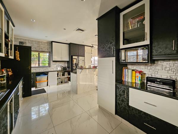 Step into the stunning, fully-fitted kitchen adorned with sleek granite counters, an inviting island nook and a blend of modern black and white cabinets complemented by whimsical patterned walls. The spacious open-plan lounge and dining area create the perfect setting for gatherings with loved ones.