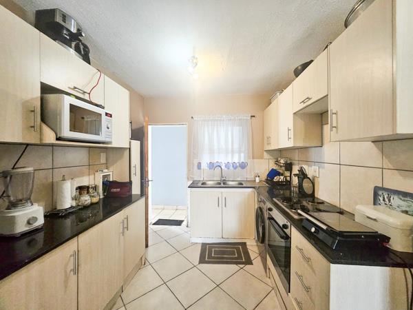 Step into a fully-fitted kitchen with sleek countertops and ample cupboard space, ideal for daily cooking or entertaining guests. The open-plan lounge and dining area leads out to a private patio a great spot to unwind or enjoy outdoor meals.