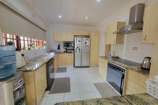 Entering the home which leads you into a huge lounge, dining area and into a fully fitted kitchen with loads of cupboards. The kitchen is fully fitted with oven, stove and granite tops. The home is also fitted with aircons.