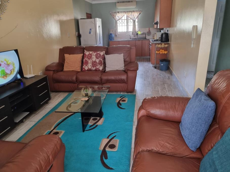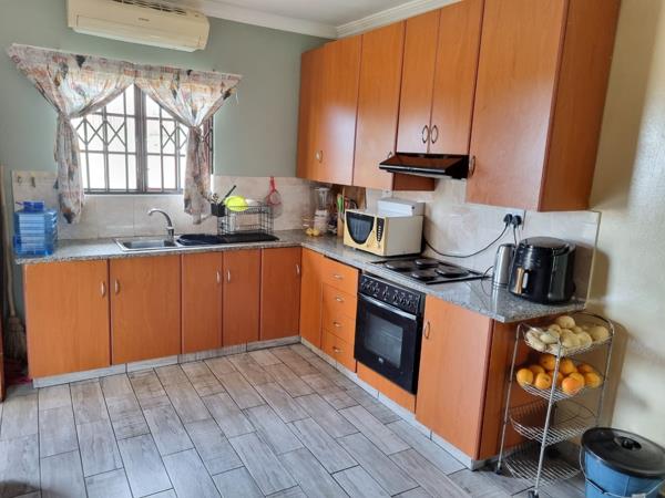 Discover this inviting 3-bedroom, 2-bathroom residence located in a well-maintained complex in Shulton Park, Kingsburgh. Spanning 112 square meters, this property offers a comfortable and functional living environment ideal for families or individuals seeking a convenient lifestyle. The interior features an open-plan living and kitchen area, complete with tiled flooring throughout and an air conditioning unit for climate control. The kitchen is equipped with ample orange-toned wood cabinets, granite-look countertops, a built-in oven, and stovetop, all complemented by modern wood-effect tiled flooring.