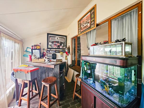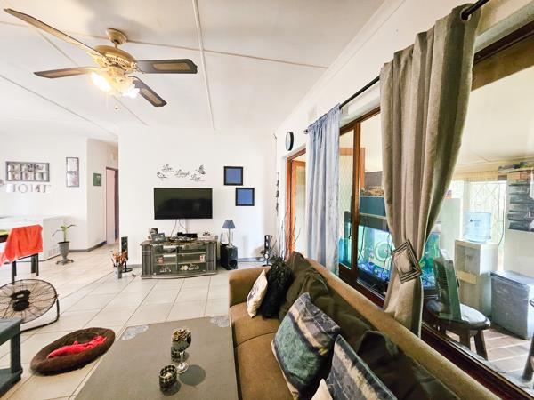 The heart of the home is the expansive open-plan living area, where the kitchen flows effortlessly into a spacious dining space and a cosy lounge. The lounge is fitted with a ceiling fan, ensuring comfort during warmer days, and sets the tone for relaxing evenings or catching up with loved ones. From here, step out to a charming enclosed patio area complete with a built-in bar. Its the perfect space for hosting gatherings, weekend braais, or simply unwinding with friends and family.