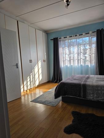 As you step inside, youre greeted by a spacious open-plan layout that flows effortlessly from the lounge to the dining area and into the modern kitchen. The kitchen is both functional and elegant, fitted with rich dark wood built-in cupboards, a hob and eye-level oven, a double sink, and a separate laundry and scullerymaking everyday living and entertaining a breeze. The home features laminated flooring throughout, with the exception of the kitchen, creating a warm and cohesive atmosphere.