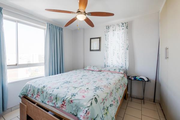 Both bedrooms are generously sized, tiled throughout for easy maintenance, and each comes with built-in cupboards and a stylish en-suite bathroom. The modernised kitchen features warm wooden countertops, ample cabinetry, a rare double sink, and a fresh, contemporary finish.