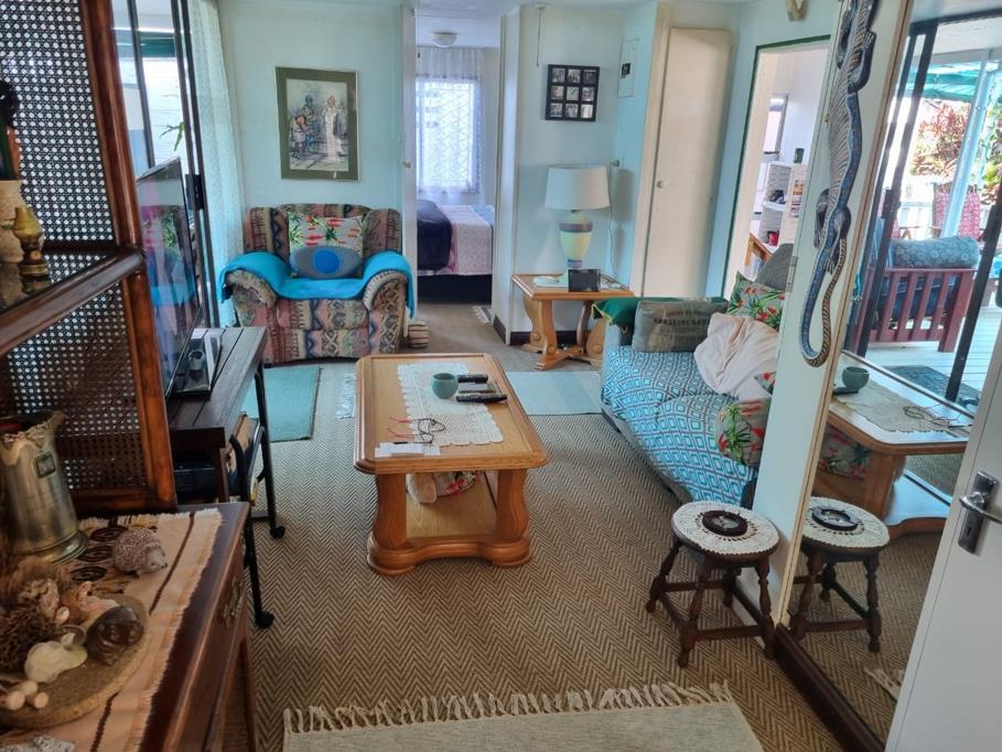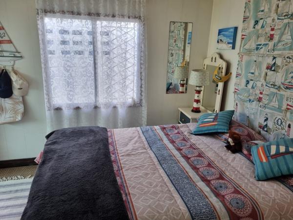 Both Bedrooms and Lounge have Sliding Doors leading out to a Spacious undercover Deck, Garden and Built in Braai Area.