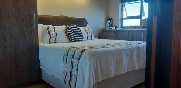 The spacious main bedroom features plenty of built-in cupboards and a slight sea view, while an additional small space can easily be converted into a cozy spare roomperfect for a single bed. The bathroom includes a shower, basin, with a separate toilet, with room for a washing machine for added convenience.