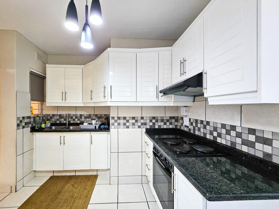 Walking into the apartment, you are greeted by a beautiful, spacious kitchen with plenty of built-in cupboards. The kitchen features a large built-in stove with an extractor fan, as well as the luxury of a double sink.