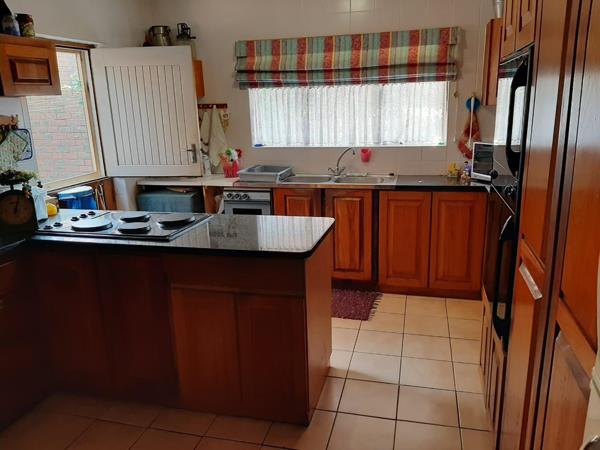 Large fully fitted kitchen, with hob and oven, lovely cupboards, dining room and large lounge with sliding doors that open onto the patio. TV lounge with sliding doors to verandah and built-in braai area.