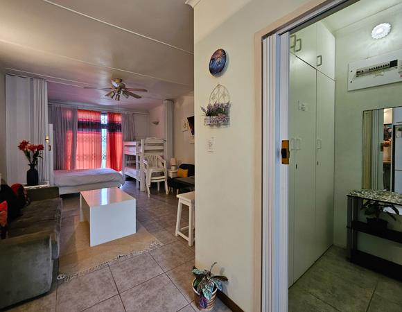The unit consists of a fully-fitted kitchen, a breakfast nook, open-plan lounge and bedroom. This resort style living, offers a private balcony with superb sea views. One can enjoy a dip in the serene pool or relax at the braai area provided.