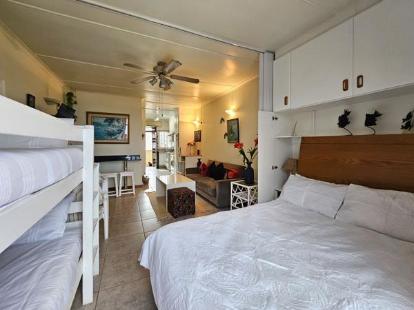 Beautiful bachelor apartment for sale in Winklespruit. Located literally on the beach and in a safe, well-managed and well-maintained complex. Sold fully furnished.