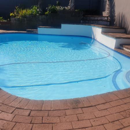 Located in central Warner Beach this property is built in the old style era but beautifully maintained and therefore has quite large rooms.. The stand is a corner property of 988 square metres, making it exclusively private. As you enter through the front gate you will see how the land is mainly level, just rising up slightly to accommodate the house. There are six steps leading up to the front door into a small entrance hall and to the right of this is an enormous room with a small bathroom, with a shower, toilet and basin, where the owner''s son is living. A staircase leads up to another beautiful lounge, separate dining room and lovely fitted kitchen, with lots of cupboards. There are three king sized bedrooms and two really nice fitted bathrooms, the main one en-suite. Wide patio doors lead out to a pretty covered patio and large pool surrounded by manicured gardens.The property outside is all neatly brick paved, giving a very clean exterior to the home. There is a single garage and two big store rooms . If style and comfort, plus lots of space and a good environment is what you are looking for, please give me a call and I will arrange an appointment to view.