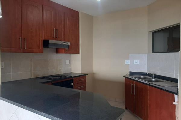 The open-plan kitchen is equipped with modern cupboards and a granite countertop, along with a stove, oven, and oven hob. The property includes two bathrooms and one carport with a shade net, along with additional off-street parking. Residents can enjoy a communal garden with barbecue facilities and a wooden deck.