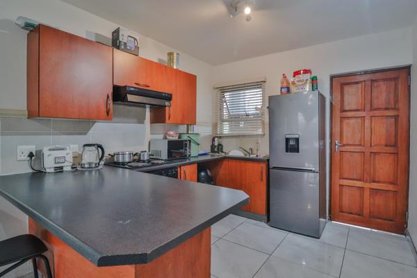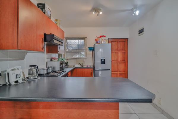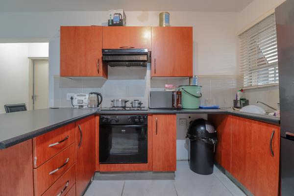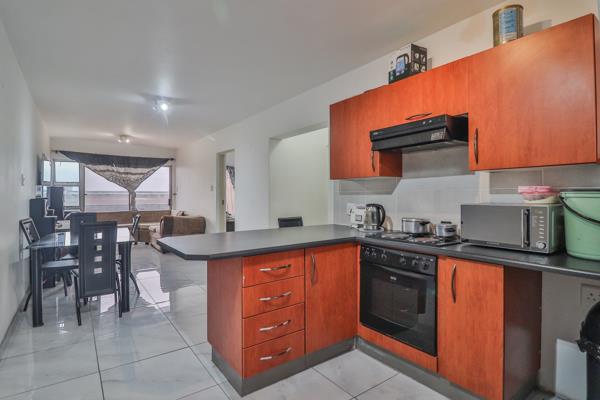 This is a first floor unit. It is tiled throughout to keep you cool and has big sliding doors out to the wide balcony from both the living room and the main bedroom. You walk into an open plan living area with the kitchen counter open to the dining and living space. Kitchen cupborads are a rich, reddish wood and the counter tops are charcoal melamine.