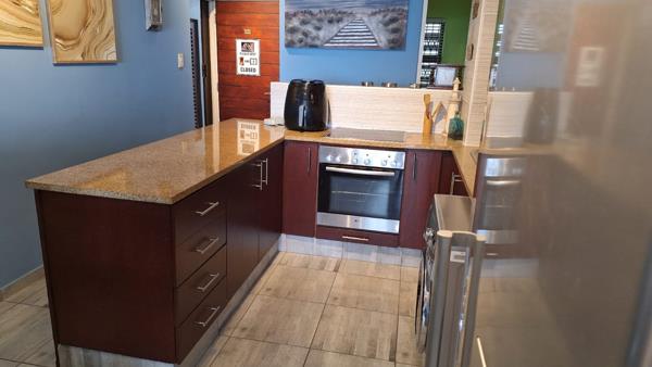 On the beach in a secure complex is an awesome ground floor apartment. The unit is fully modernly furnished with high end appliances.