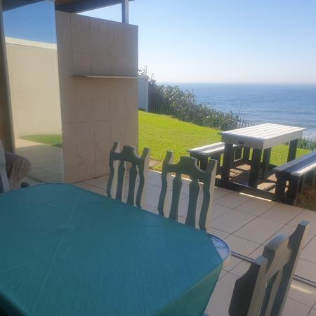 Set on a quiet cul-de-sac leading to the beach, in beautiful Winkelspruit, this mediterranean style home has everything for residential living, holidays or as an investment making residual income by renting it out to holiday makers, what a happy way of realising the best for your investment. You enter the complex through electric gates into a spacious car park and the property in question is right at the front of the complex overlooking the Indian ocean. A large carport at the entrance to the unit is what you see first and a single garage door but the garage has been turned into a third, very modern bedroom with an en-suite and lovely big shower at the door, for all your guests. In the unit itself. as you enter on the left hand side is a quest toilet and to the right is a very modern maple wood and granite kitchen. Leading from there is a lovely big square lounge that has sliding doors out to a covered patio with nothing but a gorgeous lawn that leads down to the ocean, the best sea views up and down the coast. A staircase leads up to two big bedrooms, the main one with glass doors opening to a large balcony, again overlooking the ocean. At the end of the passage next to the bedrooms, is an exquisite bathroom, very nicely tiled and appointed. The whole home is tiled throughout with modern tiles and the decor offers a calm haven with modern vibes. The location and peaceful surrounding area make this home very desirable, as you cannot get closer to the ocean and on the other hand, there are shops, schools and a lovely holiday feeling. If this interests you, please give me a call and I will arrange an appointment to view.