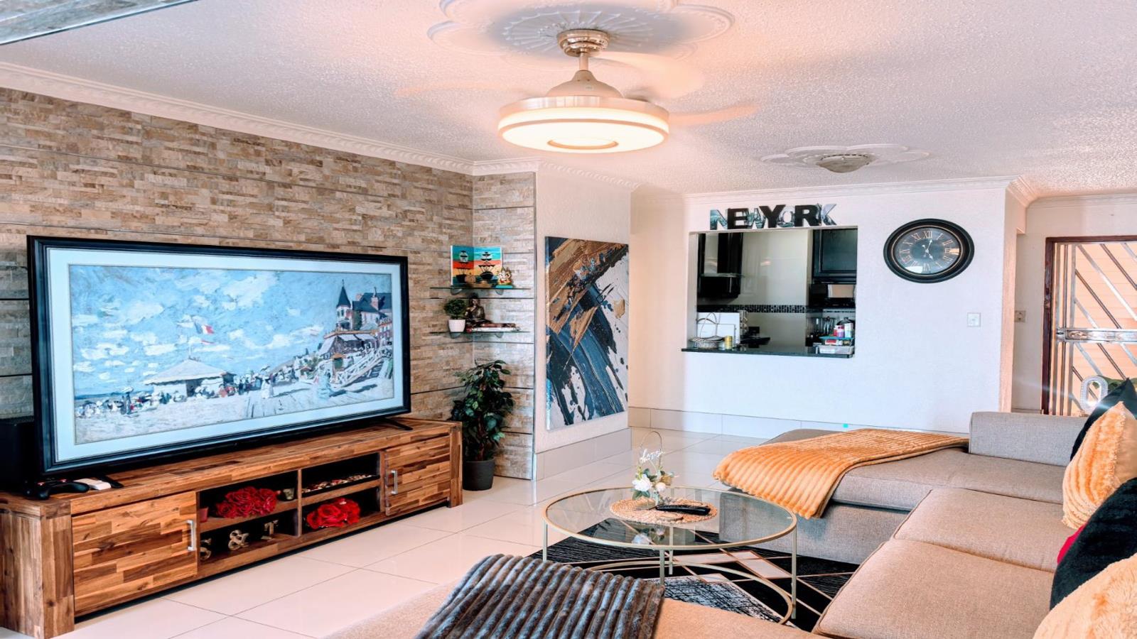 Step inside to a bright and airy open-plan living area, where modern design meets effortless charm. The stylish TV feature walls add a touch of sophistication, while the welcoming entrance leads into a space designed for both relaxation and entertainment.