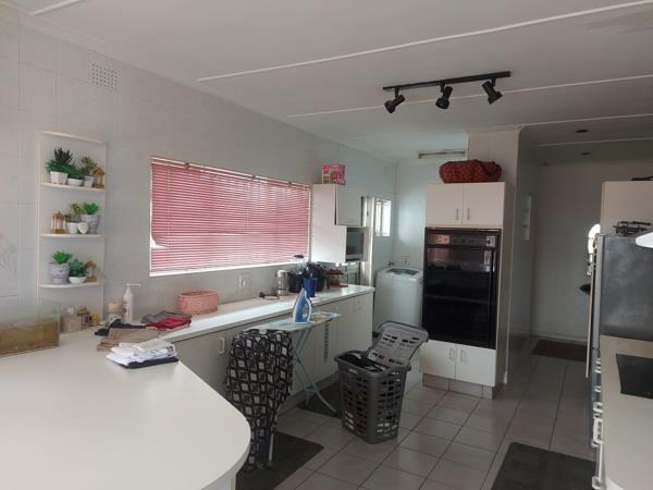 Upon entrance, you have an open plan kitchen and dining area with a spacious lounge set to the side. The kitchen has ample cupboard space and a scullery with washer connections.